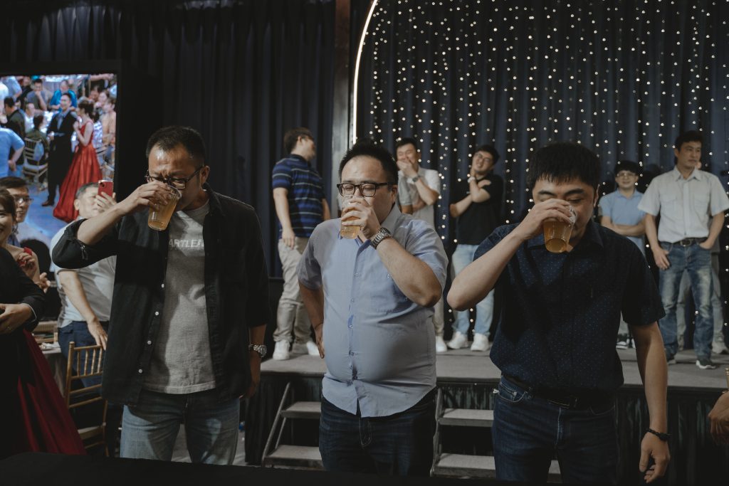 婚禮上飲酒的遊戲真的要其他遊戲風險大很多,因為每個人酒品未知、酒量未知,一個過頭就會毀掉新人的一天,所以請大家想玩一定要找熟悉知道酒品的朋友,也會建議婚禮上以適量為主,結束後要喝到頭昏、發瘋都是沒問題的。
