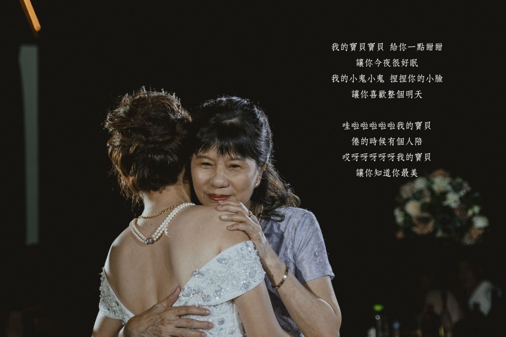 婚禮不像活動,會是單一的情緒跟情感從頭到尾;對我來說,婚禮像是一首歌,會有進入主歌前的前奏、情緒較滿的副歌到結束的收尾,也會依照氛圍去搭配語氣口吻的轉換,對我來說沒有這樣的過程,真的會蠻難發揮的。不過真正來到結婚宴,我跟他們認識也相處近一年的時間了,多少都能理解PI想這樣做的堅持,也因為婚禮前有中式儀式,幾經取捨我確實在喜宴上沒有太多感性的發揮,但相信我,有些事親身經歷才會懂,有些人的感性不是透過言語去傳遞的。謝謝PI最後讓媽媽牽著進場,PI在媽媽帶著他進場的這個環節裡,挑了張懸的「寶貝」這首歌,謝謝鐵馬紀錄了這一刻,把瞬間變成了永遠。