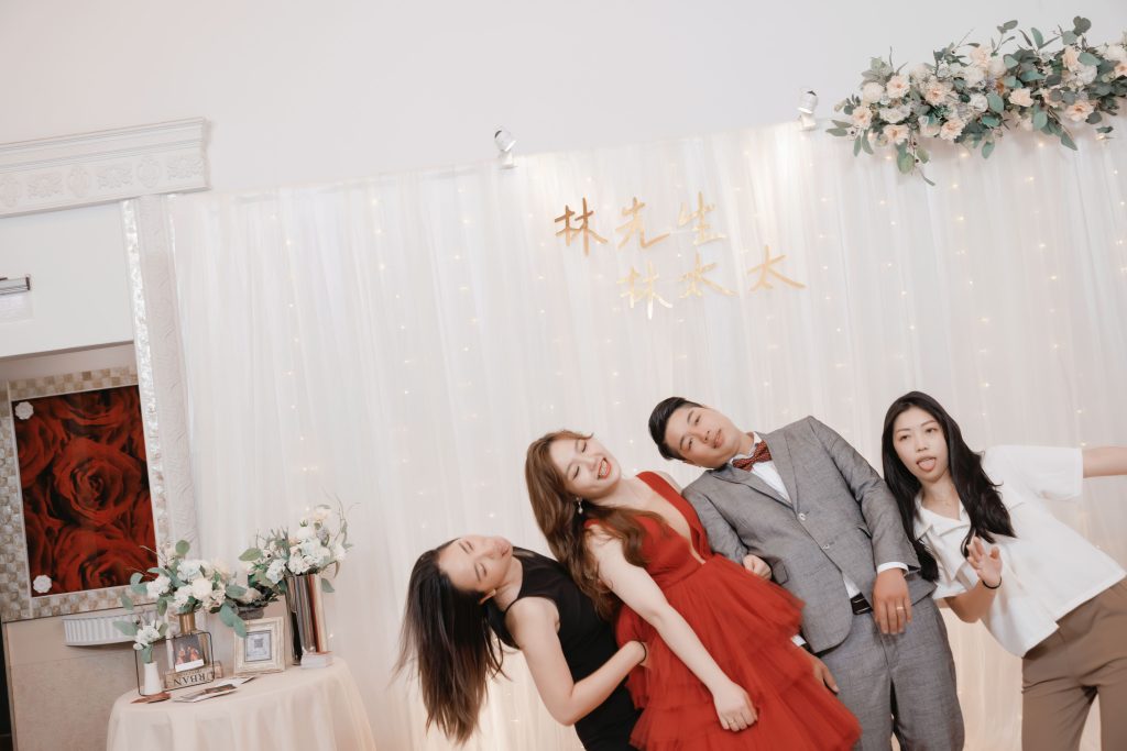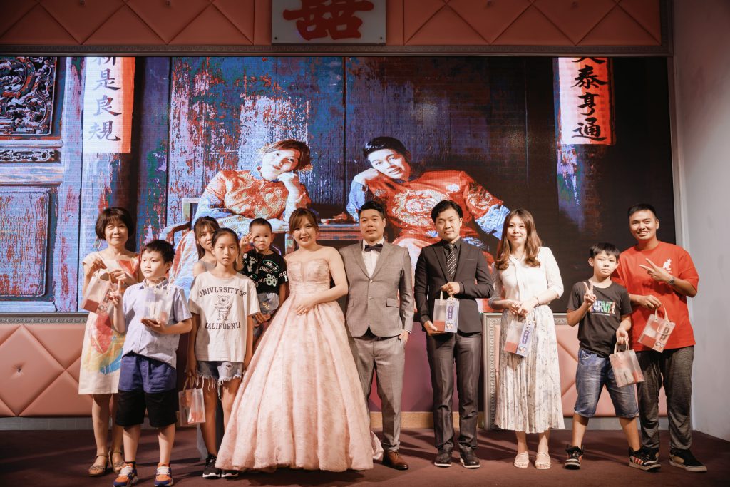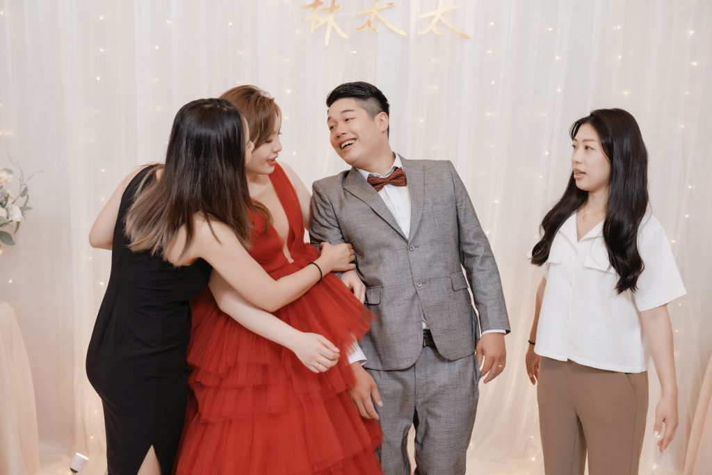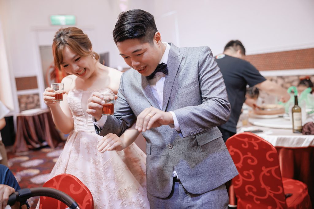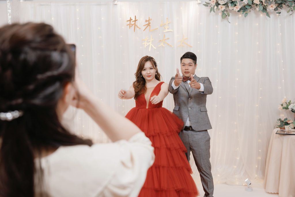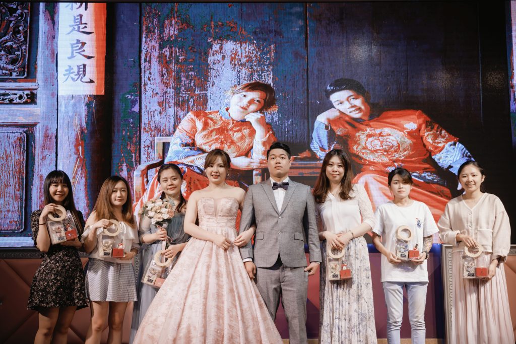 Ting & Huien 在討論過程裡,大概不只一次問過賓客的感受,甚至也因為朋友更動了不少流程的安排,連重要的進場環節也還是關心著友人們狀況,席間也是不停在詢問:大家有吃飽嗎?好吃嗎?要吃的開心哦!雖然我常常在策畫的過程,灌輸大家要以「自己」為出發,因為這場婚禮是屬於你們的,但對他們來說,也許這段旅程裡最重視的其實是一路上在不同階段裡參與著他們的家人朋友,而敲敲杯對我來說就是這樣適合他們的進場方式,因為真正愛你、在乎的人會站出來,而你也會因為重視不願意漏掉任何一位朋友家人的杯子,是雙向奔赴的關係啊!
