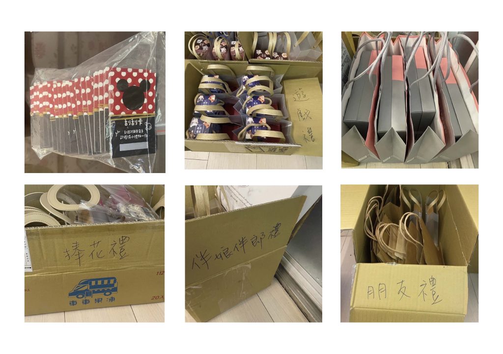 除了提供我們清單以外,如果在婚禮前能將禮物依照發放時機分類集中,標註上用途,除了能夠讓你們出發會場前更快速確認自己哪些東西沒有帶到,也能方便幫你收的人辨識跟尋找哦!活動中的禮物,一般都是由主持團隊的人會去跟你們拿,但有時候會因為前一天就先拿到餐廳寄放,所以可能連你自己都不知道被放到哪裡了,這時候越清楚的標示,越能方便我們幫忙尋找哦!