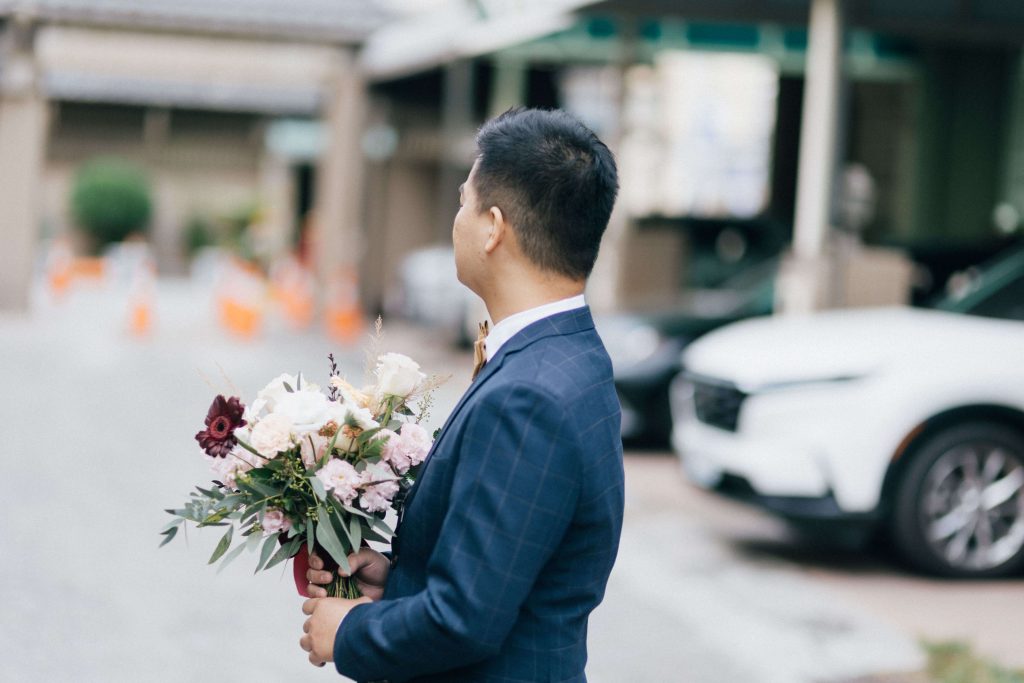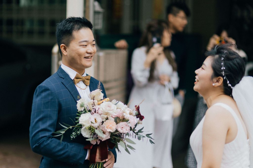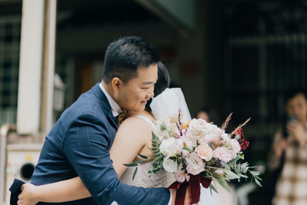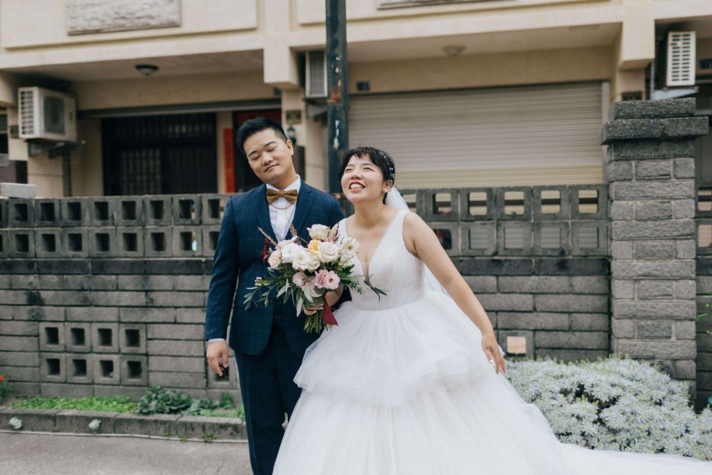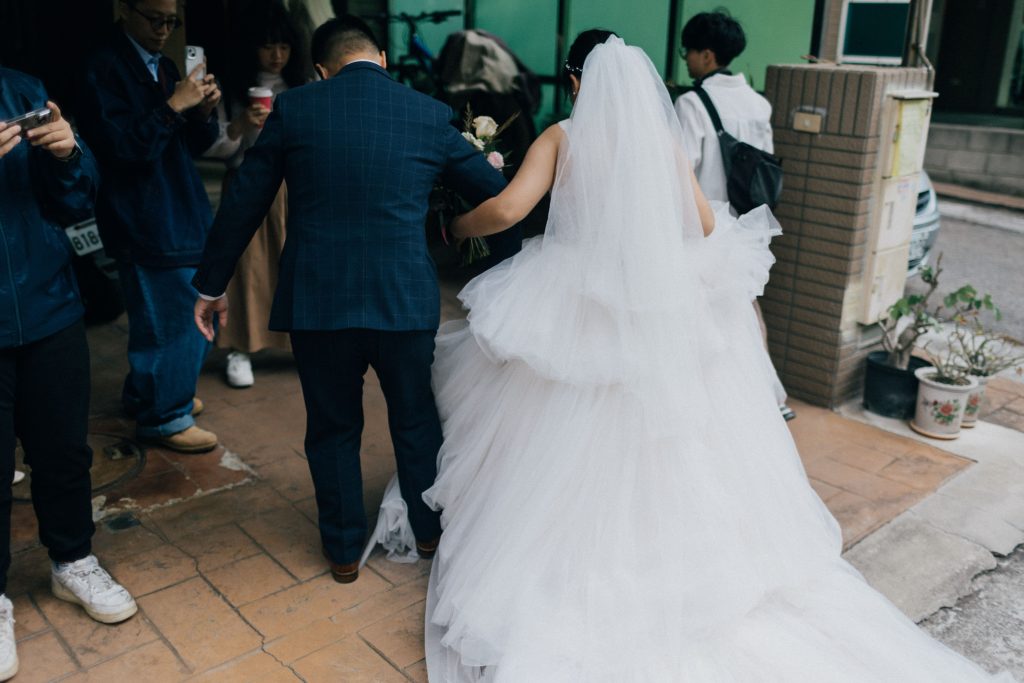 First Look是第一次用視訊訪談時候,婉靖提出想要加進流程裡,希望能夠在熟悉的家,在家人朋友的身邊完成這個儀式。設計First Look的時候,一般我會建議新人要找空間單純、安靜的地方,這樣在表達情緒的時候也比較能自然安放,不會受到別人的目光或是聲音影響,可是所有別人以為相似的流程,都會因為人的不同而產生新的樣貌,所以也許對婉靖和瑞璋而言,熟悉的街景、安心的家園、還有一群可愛好奇的親友才是這個儀式迷人之處,那麼只要排除掉會有大影響的因素,像是廠商們的時間跟方案預算,那剩下的就是讓一切好好的發生。