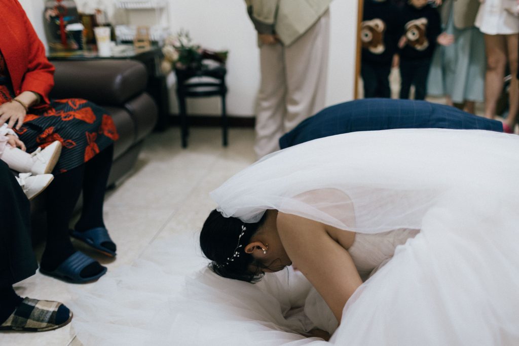 婚禮前,特別安排在家裡面進行感謝儀式,原先預計要讓瑞璋闖關,後來婉靖想想也沒有其他機會可以跟爸媽說說話,所以把時間拿來感謝爸媽,沒能闖關的瑞璋婚後還對我表達婉惜(?)
