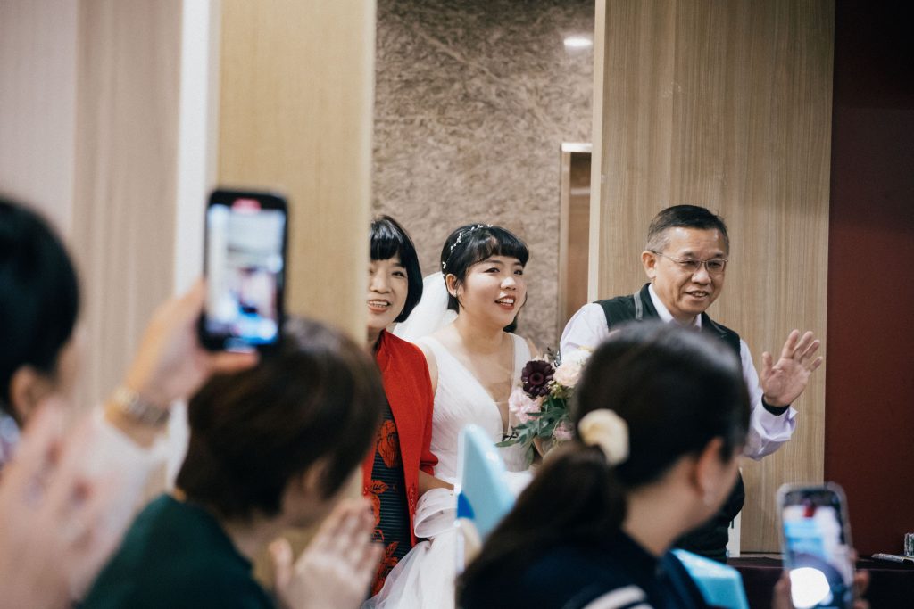 第二次進場有很多種形式,但在跟Ting & Huien討論,了解他們的個性跟想法之後,還是提出了常見的「敲敲杯進場」。在我心裡一直覺得所謂與眾不同的婚禮是因為人而產生的,當然全新不常見的婚禮流程確實會透過每對新人不同的故事而發生,但我更重視的其實是你們與賓客之間在婚禮上的連結,不是譁眾取寵或是標新立異的流程安排,有時候那些常見的流程,反而能讓大家更自在的互動