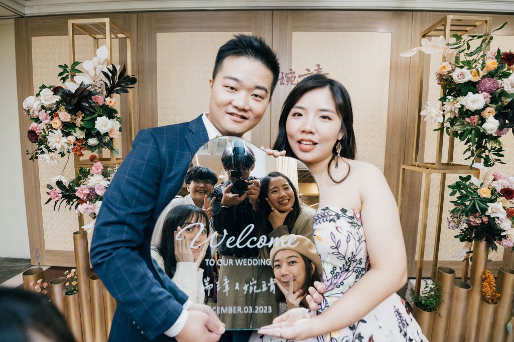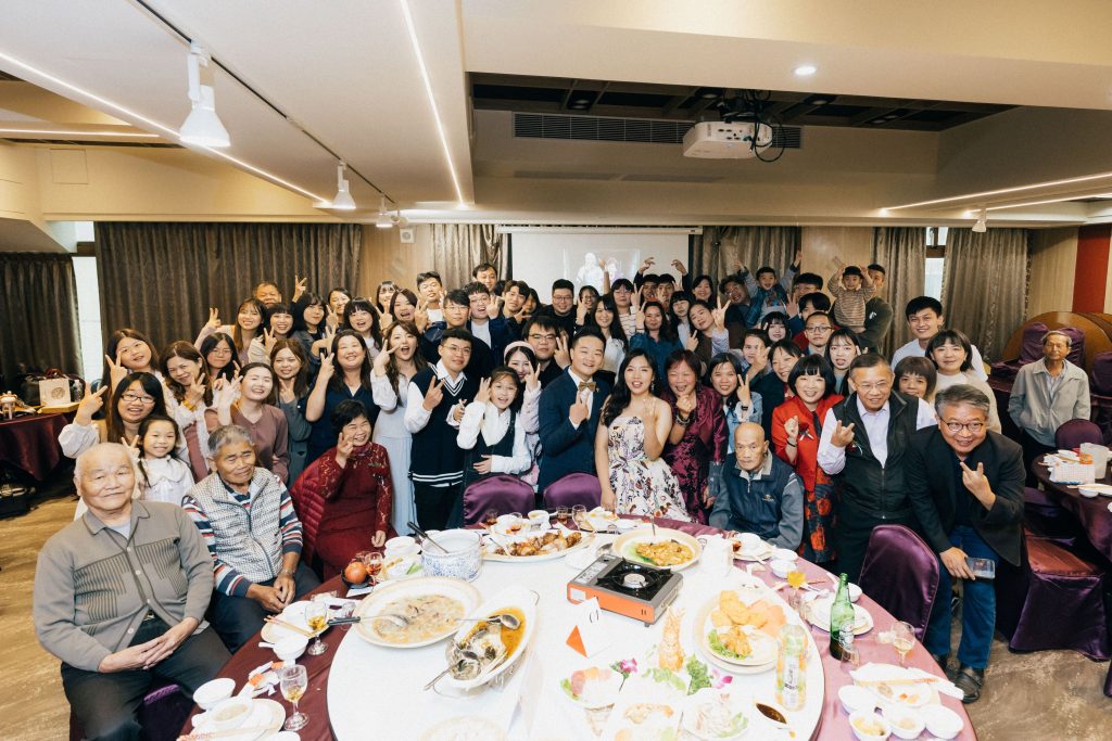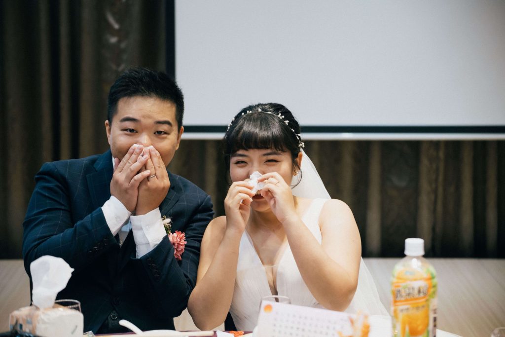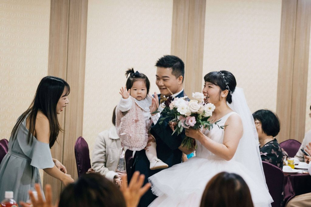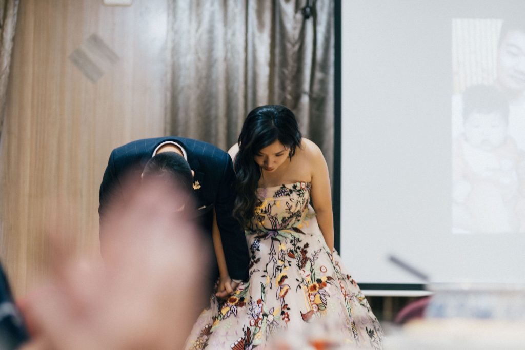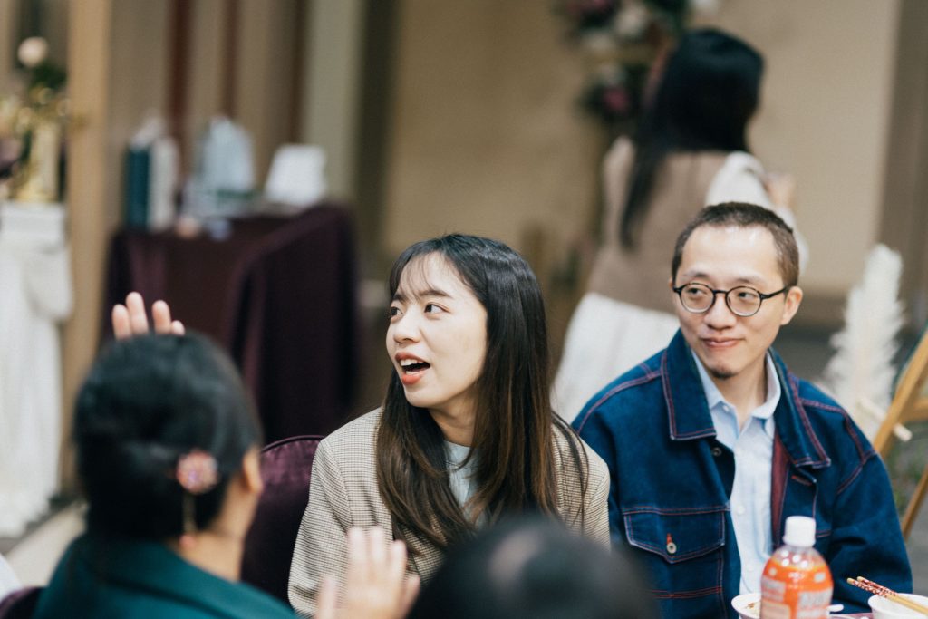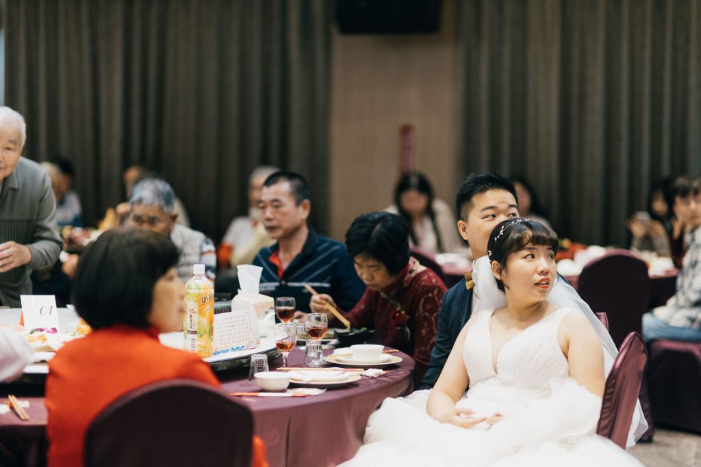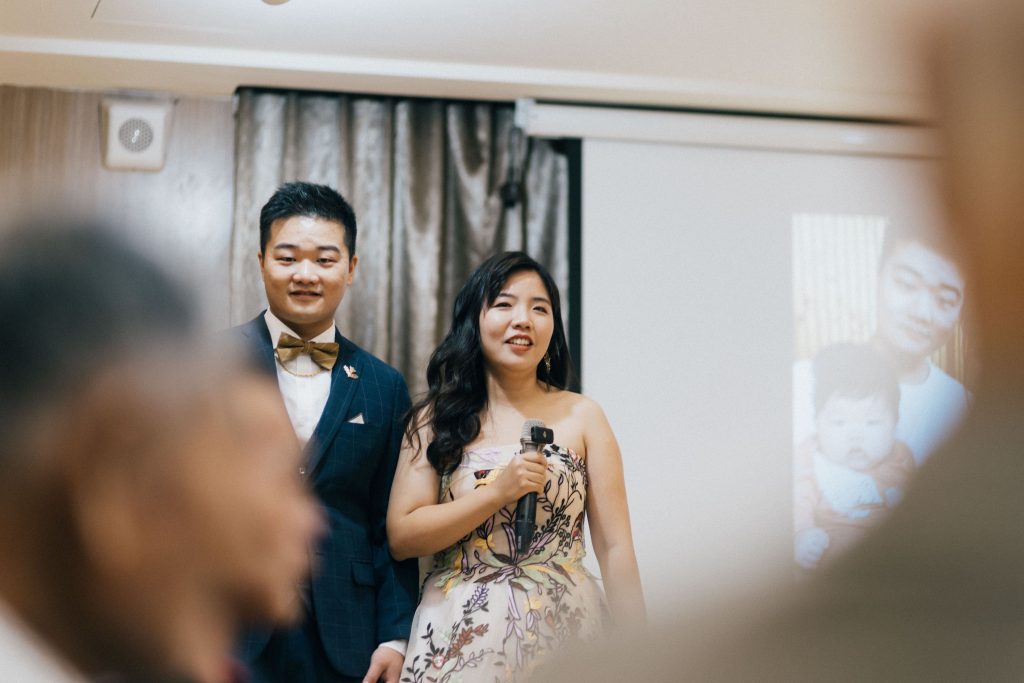 Ting & Huien 在討論過程裡,大概不只一次問過賓客的感受,甚至也因為朋友更動了不少流程的安排,連重要的進場環節也還是關心著友人們狀況,席間也是不停在詢問:大家有吃飽嗎?好吃嗎?要吃的開心哦!雖然我常常在策畫的過程,灌輸大家要以「自己」為出發,因為這場婚禮是屬於你們的,但對他們來說,也許這段旅程裡最重視的其實是一路上在不同階段裡參與著他們的家人朋友,而敲敲杯對我來說就是這樣適合他們的進場方式,因為真正愛你、在乎的人會站出來,而你也會因為重視不願意漏掉任何一位朋友家人的杯子,是雙向奔赴的關係啊
