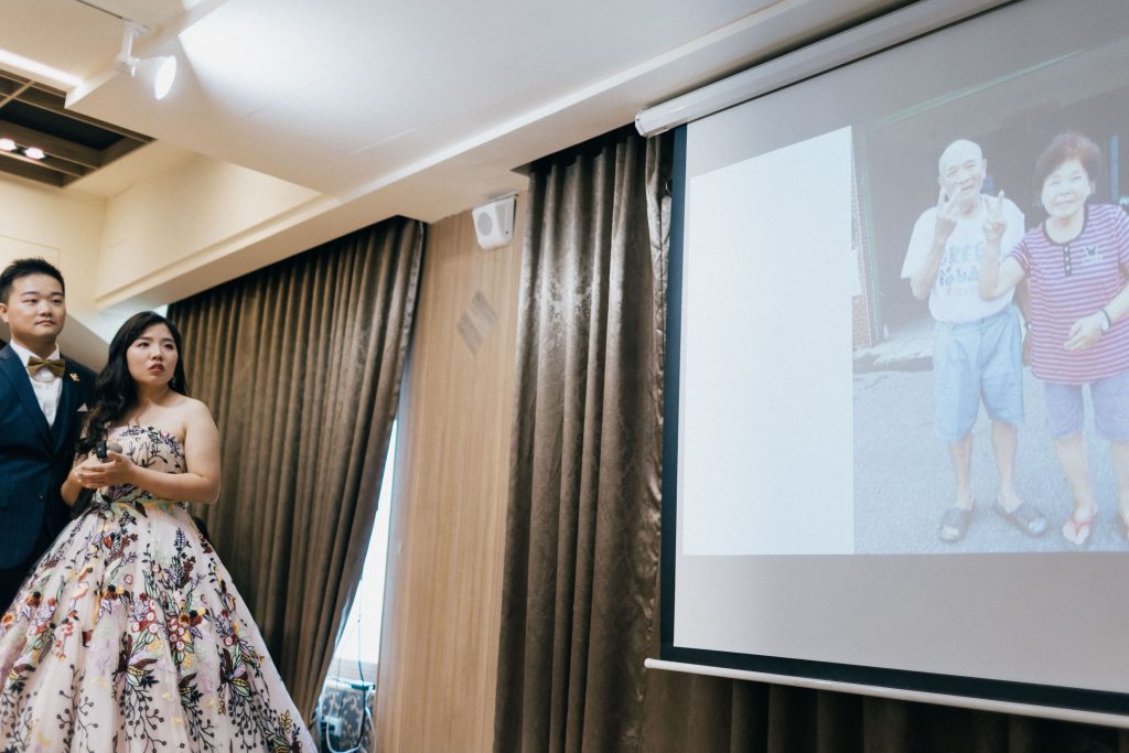 所以基本上我經手過的新人,都會被我建議如果沒有時間做影片,可以把過去跟大家的回憶整理出來輪播吧!讓大家再也不是只是來吃吃飯、看婚紗照,也能在婚禮的過程中藉由這些照片想起曾經與你共有的回憶,甚至成為桌間的有趣話題。就這樣,婉靖整理了四個將近千張的生活照雲端給我,後來還加碼了第五個Σ( ° △ °) 檔案大到我做了五個輪播影片XD