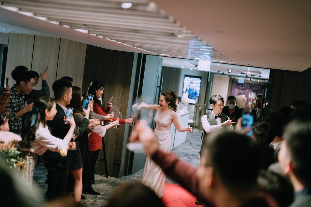 像是大家常常在影片中看到賓客在新人進場前或中途,突然要走出大門面對進場人員的窘境,這時候有場控在場內協助引導及管控賓客就是非常重要的事了