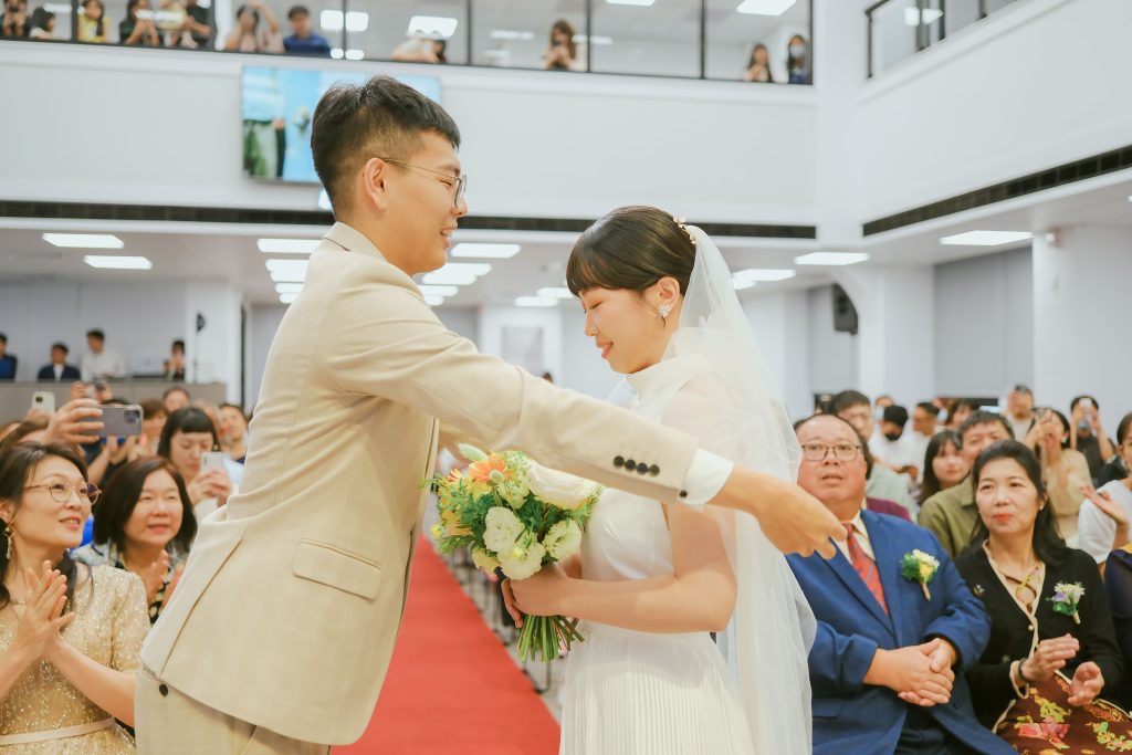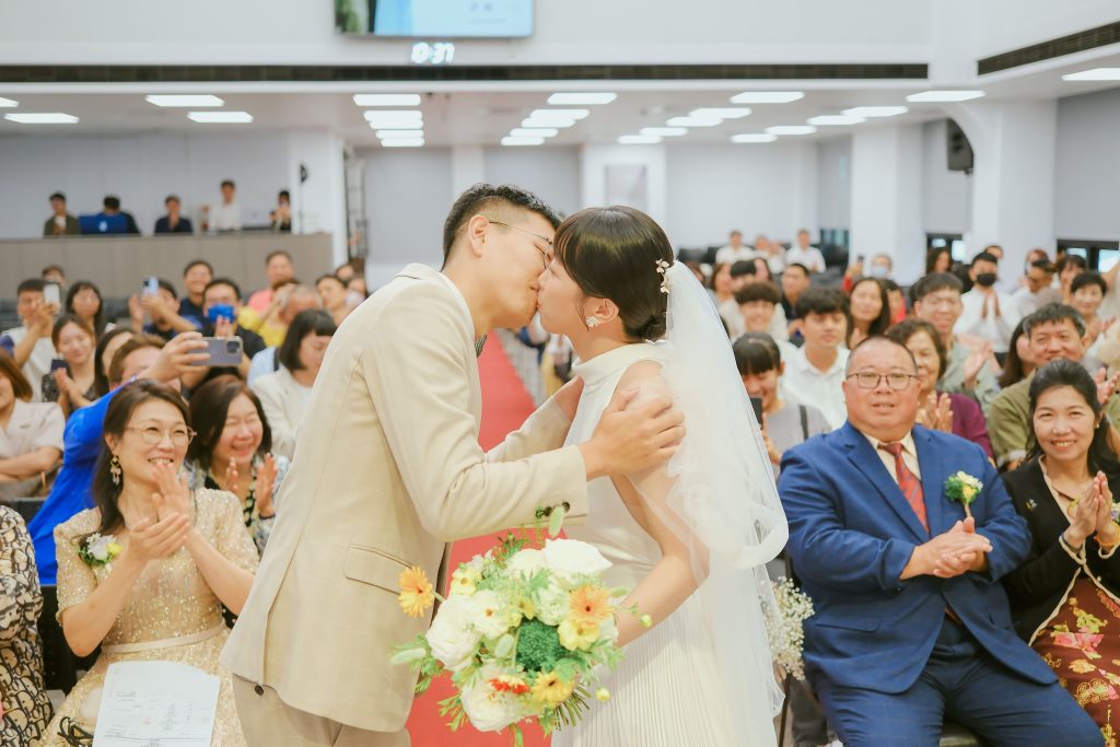 進場,安排了宗暐帶著媽媽入席,想起影片中媽媽在證婚時,對宗暐說:「I am so proud of you, thank you for being my son. (我為你感到驕傲,謝謝你成為我的兒子)」我想看著孩子成長所帶來的喜悅,支撐了每個曾經感到辛苦的時刻,也謝謝宗暐選擇了跟媽媽進場的方式,保留了屬於你們的一刻ヾ(●゜▽゜●)♡。
