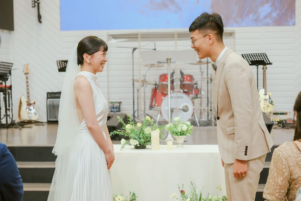也因為宗教,婚禮前先到兩人熟悉的教會完成證婚儀式,時間跟距離的關係很可惜我沒有與會參與,但婚禮前逼迫兩人要先傳誓言給我看(ノ>ω<)ノ (我好煩?)討論的時候就知道婉筑是需要準備的類型,殊不知半年前就開始準備誓言,隨著時間走近,一步一步清晰著自己想說的話,好喜歡誓言配合著過去的回憶(搭配上告白時的明信片,看到當下應該很驚喜),感覺一切都鮮明起來了。相較於準備型選手的婉筑,即興發揮的宗暐則是婚禮前幾天開始寫,甚至傳給我之後還改了一版(?)