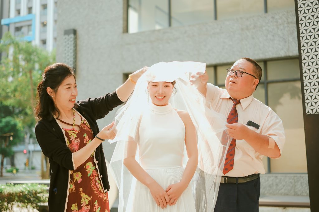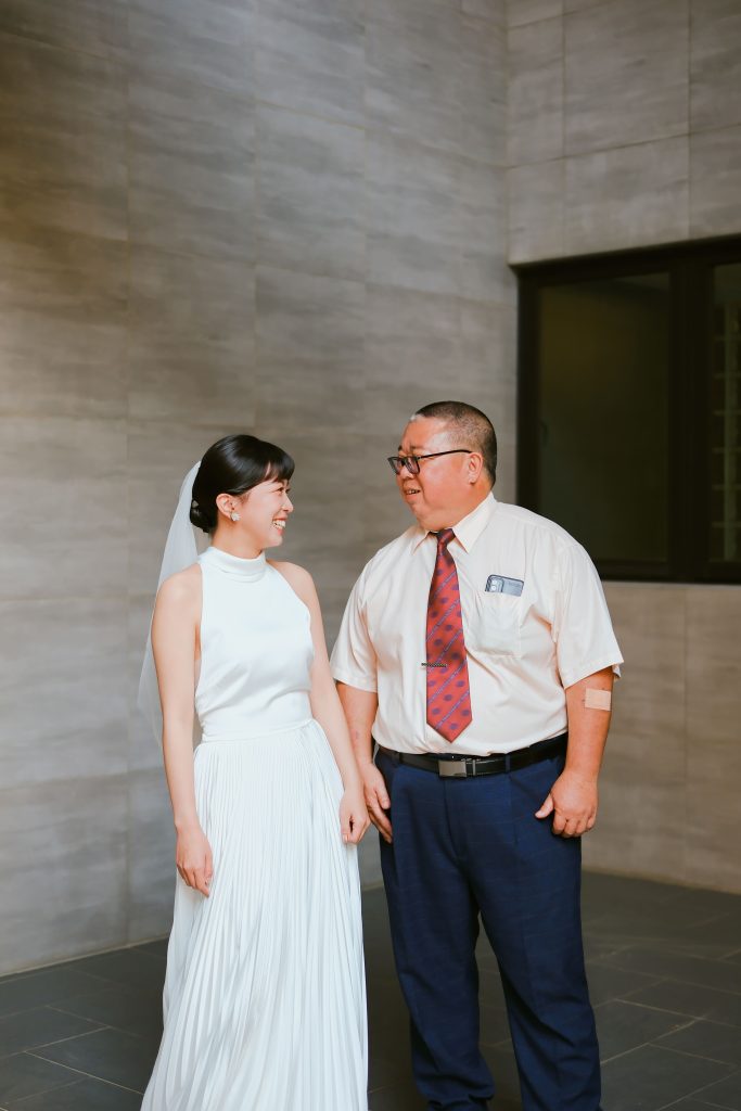 很喜歡婉筑選的這套婚紗,婚禮前幾天婉筑傳訊息來說他很猶豫證婚要不要也穿這一套百褶,因為原先其實有另外準備了一套,看完我直接秒選百褶,穿上喜歡的衣服整個狀態很自在!