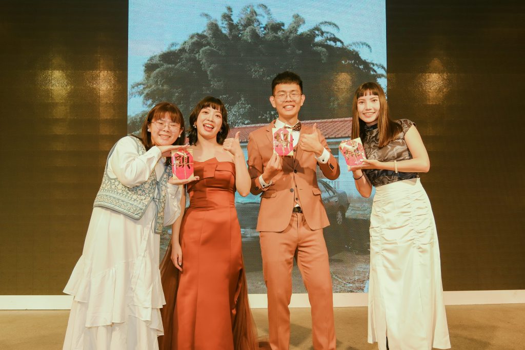 雖然在訪談的時候都會鼓勵兩個人各自感謝賓客,但也能理解每個人對於拿麥克風發言有著不同程度的緊張,所以身為極度害怕公開發言的婉筑,謝客的致詞自然是由宗暐承擔了,不過我想婉筑肯定是忘記要先看一下他寫什麼,才會在送客的時候比賓客還要意外地收到了宗暐的感謝跟告白吧(๑• . •๑)