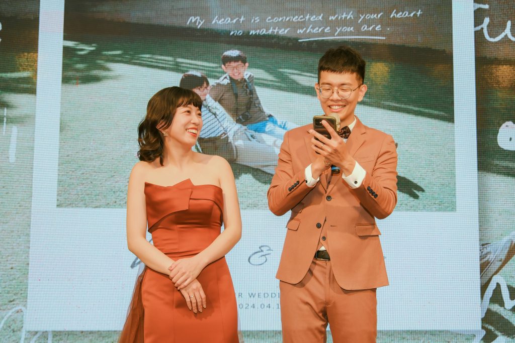 婚禮上的影片,也是多數新人在籌備婚禮苦惱的其中一件事,如果能像他們把製作影片變成一趟小小的旅程感覺也很不錯!雖然結束之後婉筑表示好像都在拍影片XD。(文章後段有婚禮影片,影片中也有紀錄了一小段他們的香港Vlog! )