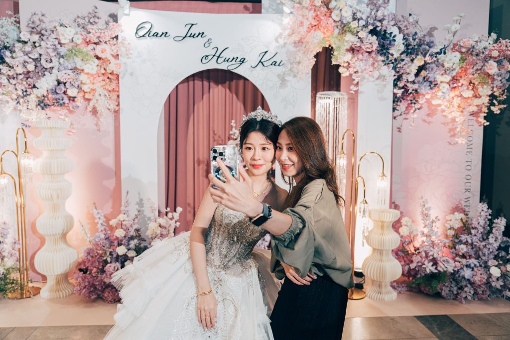 還有千千著白紗出來迎賓,讓更多提早到的朋友能好好合照與打招呼,對比婚禮流程中緊湊的時間,這段迎賓時光顯得彌足珍貴。
