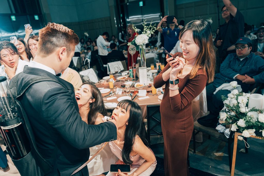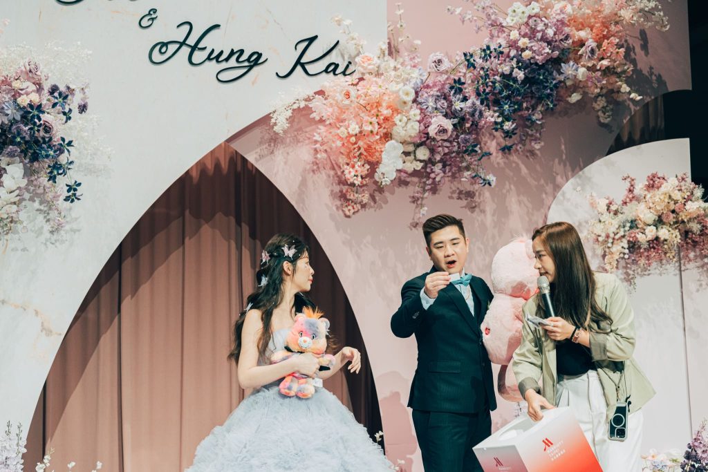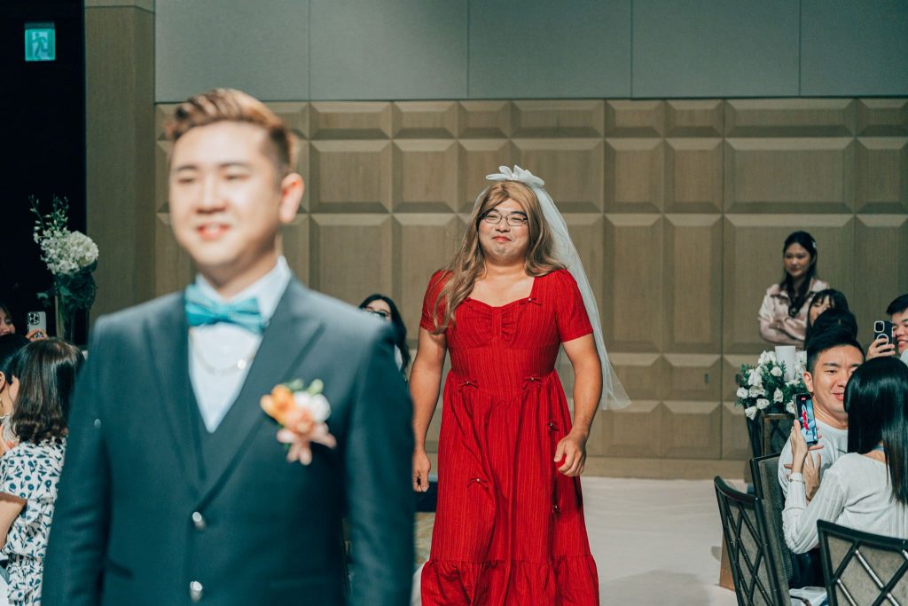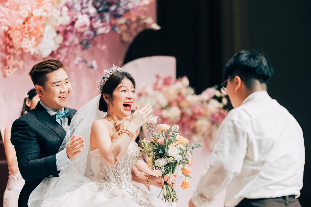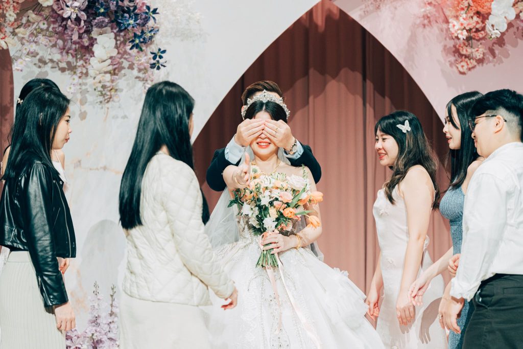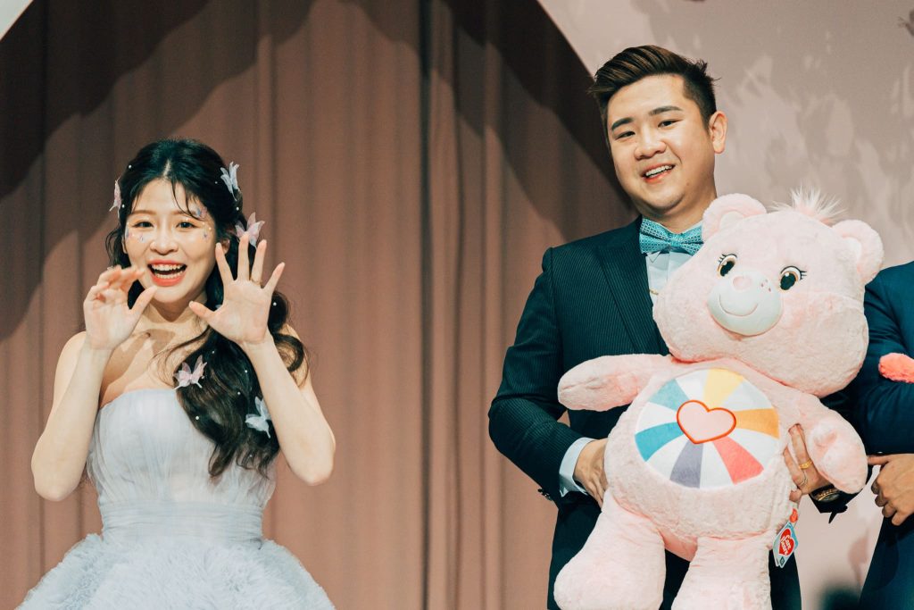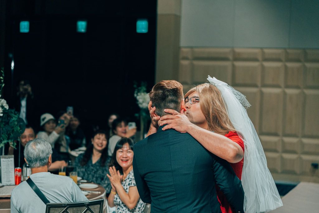 回頭看,這個橋段非常適合他們。若整場都太感性,他們反而會有些尷尬;但在笑聲中釋放情緒,卻更貼近屬於他們的相處方式,當愷傻眼笑出聲時,現場所有人也跟著笑了起來,這個驚喜也是婚禮中令人難忘的畫面之一。