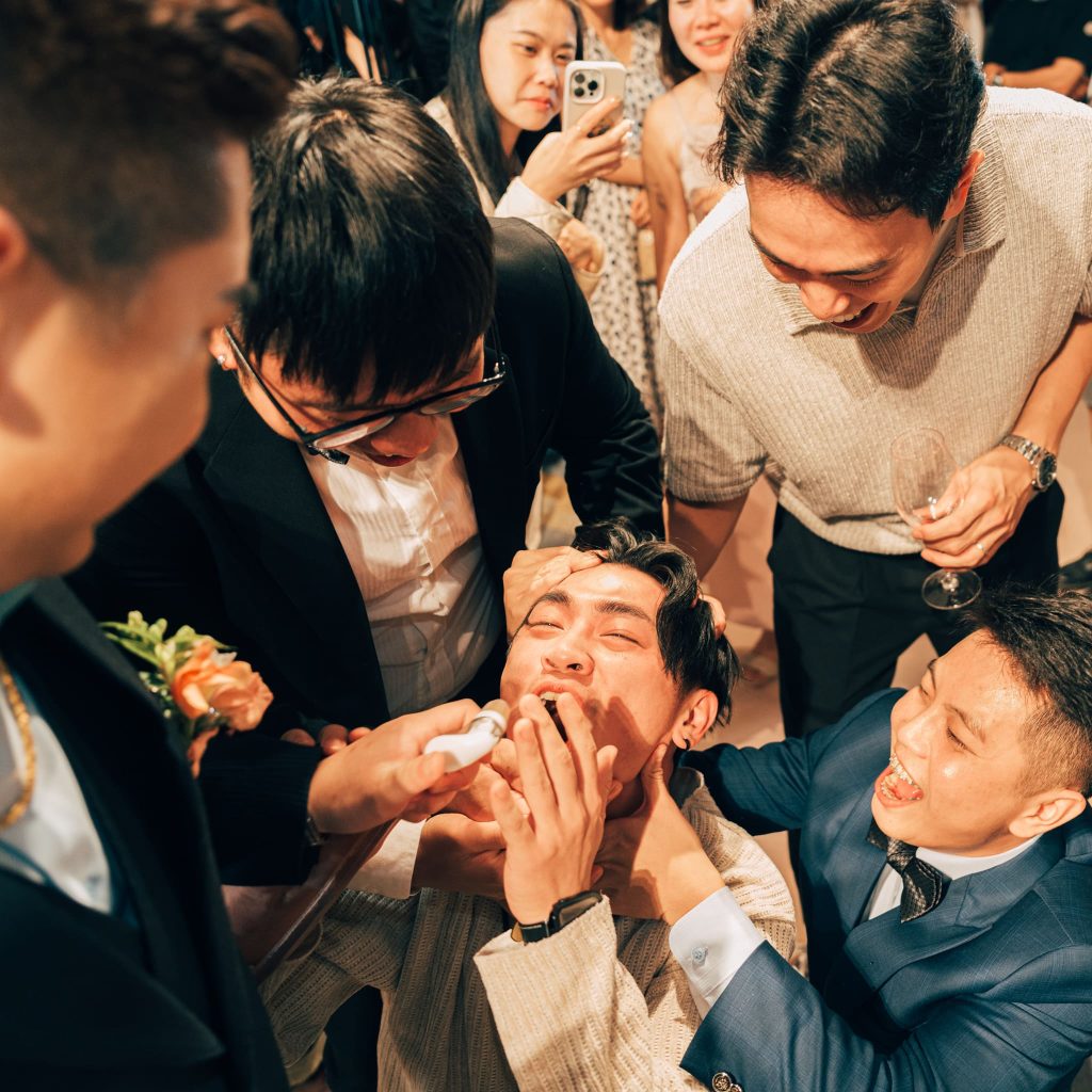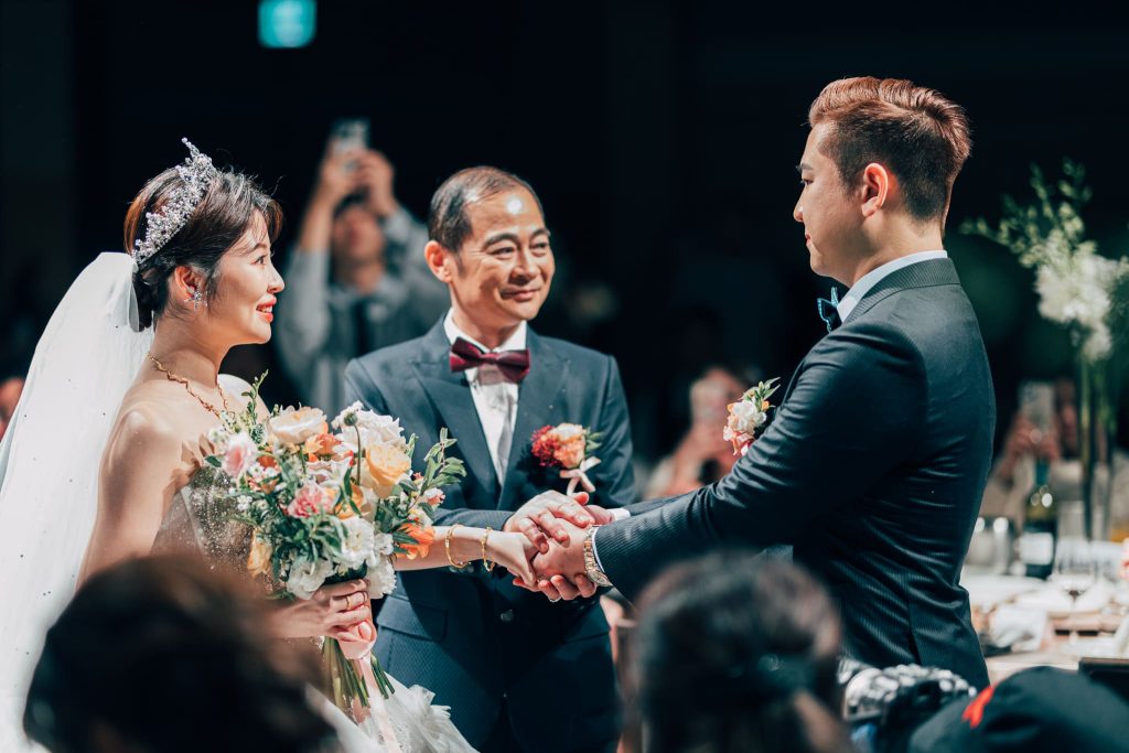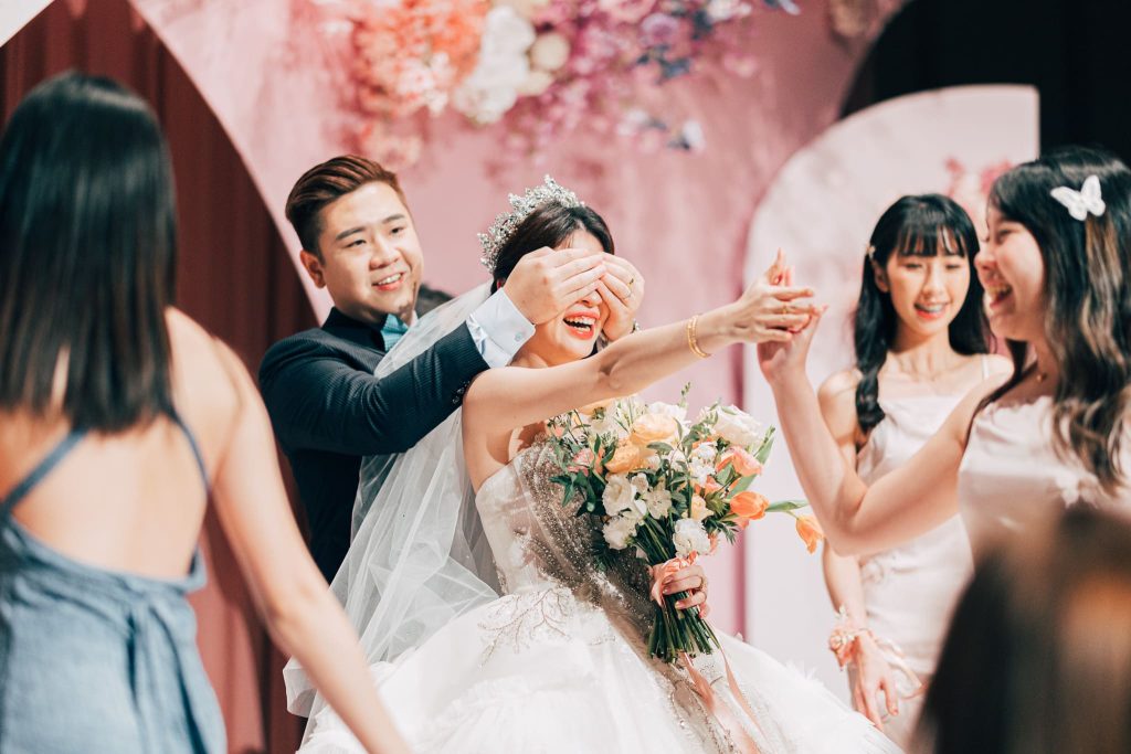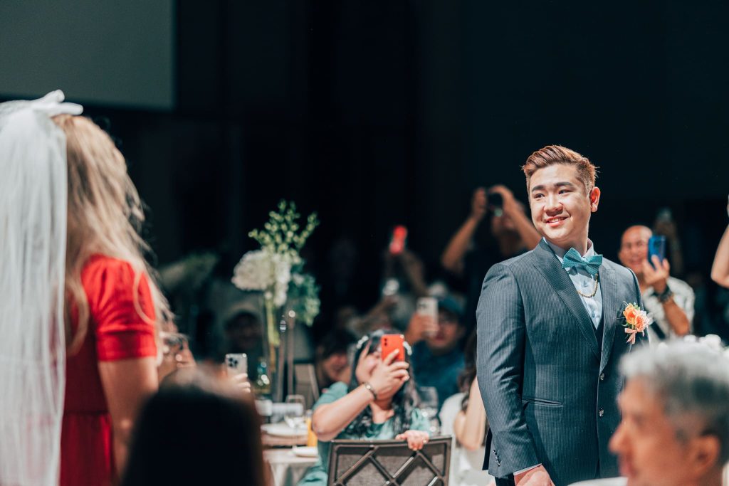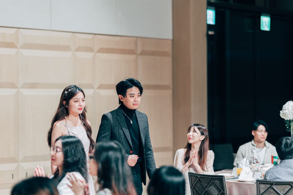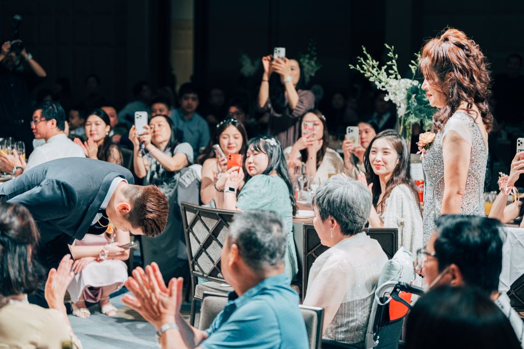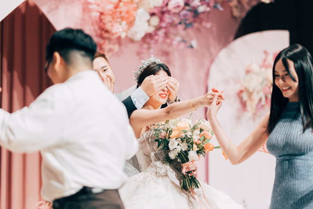 回頭看,這個橋段非常適合他們。若整場都太感性,他們反而會有些尷尬;但在笑聲中釋放情緒,卻更貼近屬於他們的相處方式,當愷傻眼笑出聲時,現場所有人也跟著笑了起來,這個驚喜也是婚禮中令人難忘的畫面之一。