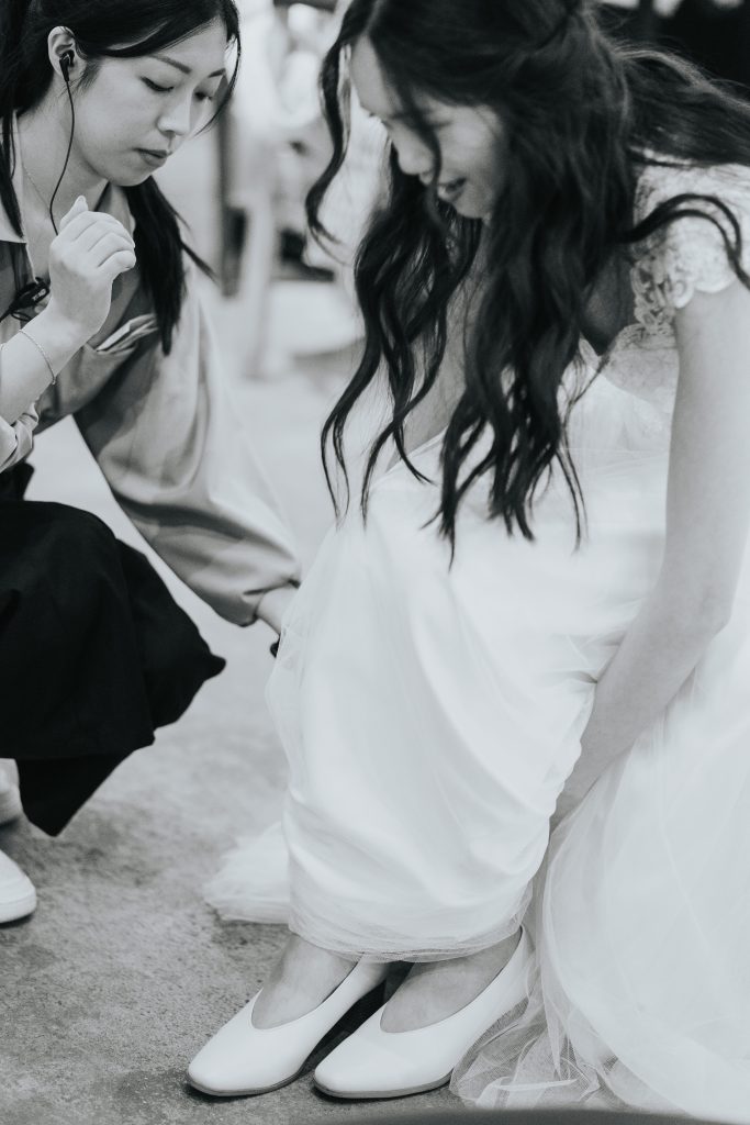 更別說是重要的進場時刻,新娘的白紗通常都會很多層,甚至有著長長的拖尾,如果喜歡長頭紗的新娘,頭紗常會跟地毯式場地勾在一起,當下能解決問題的就是管家了!有經驗的管家真的會讓婚禮順暢很多。