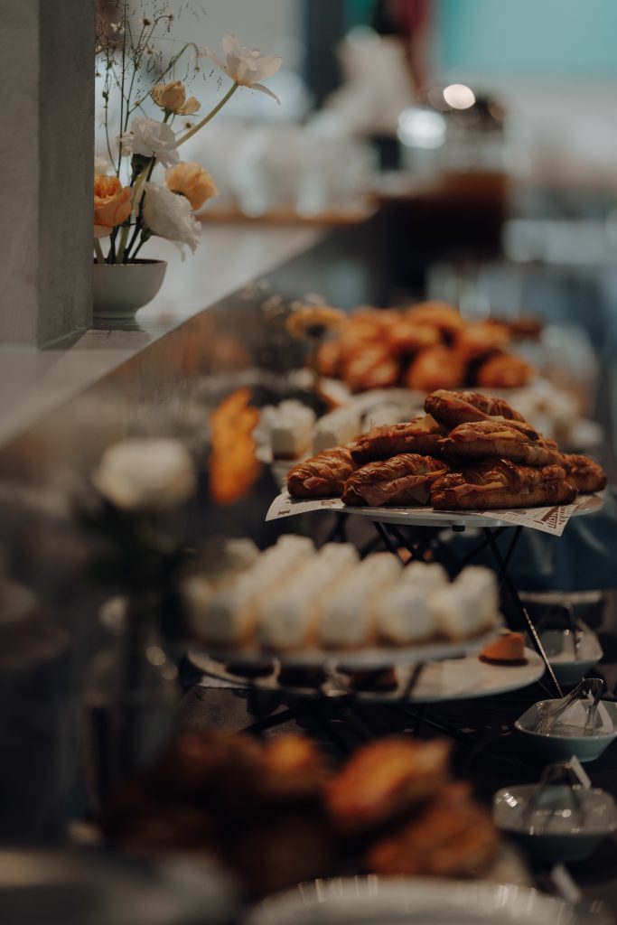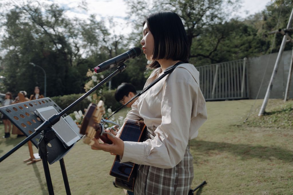 美術館二樓ALIEN All-Day Lounge,容納人數大概在60-70人之間,因為參與證婚的人比較多,約90人左右,所以我們將同輩的朋友安排在證婚的草坪上享用下午茶,長輩則往樓上咖啡廳入座,證婚結束後,我們安排了40分左右的時間讓他們可以自由跟親友聊天互動,也請美術館協助準備輕食餐點在咖啡廳跟草坪區,讓兩邊的親友都能在證婚後有個舒服的午後時光。