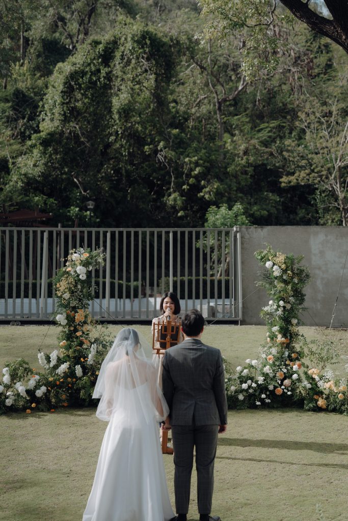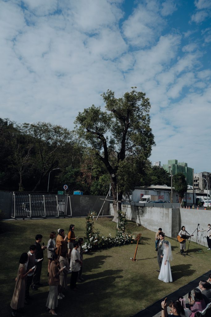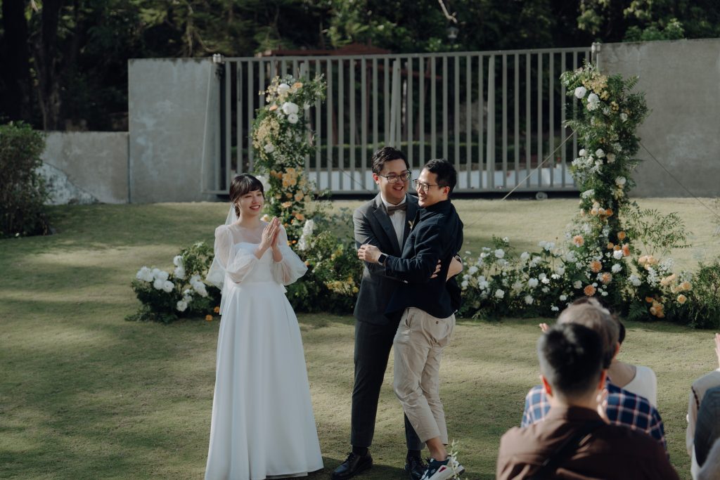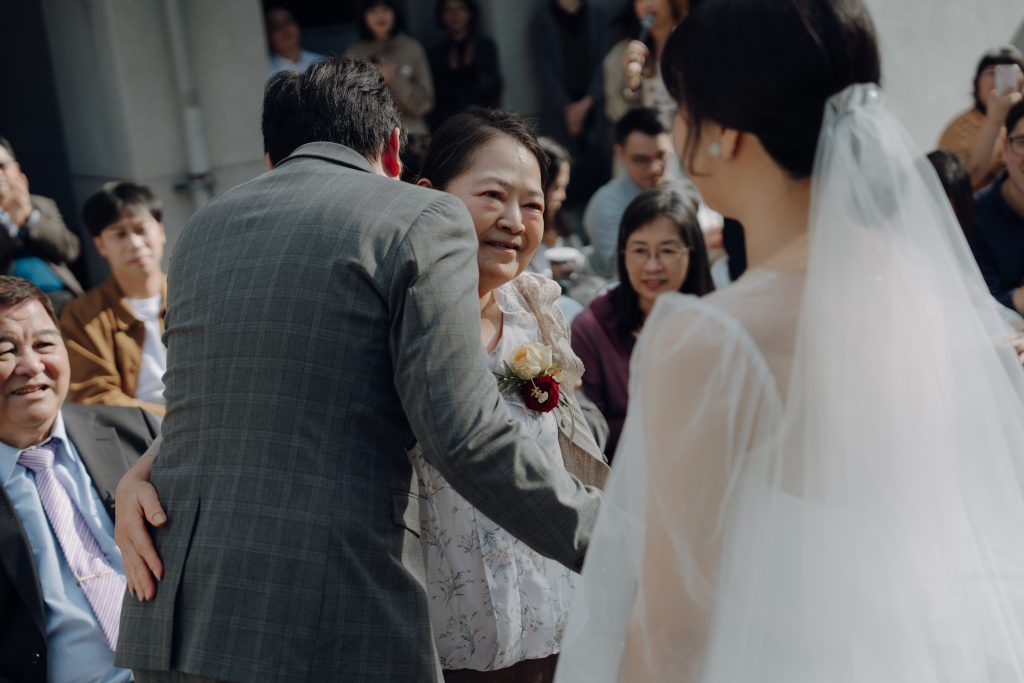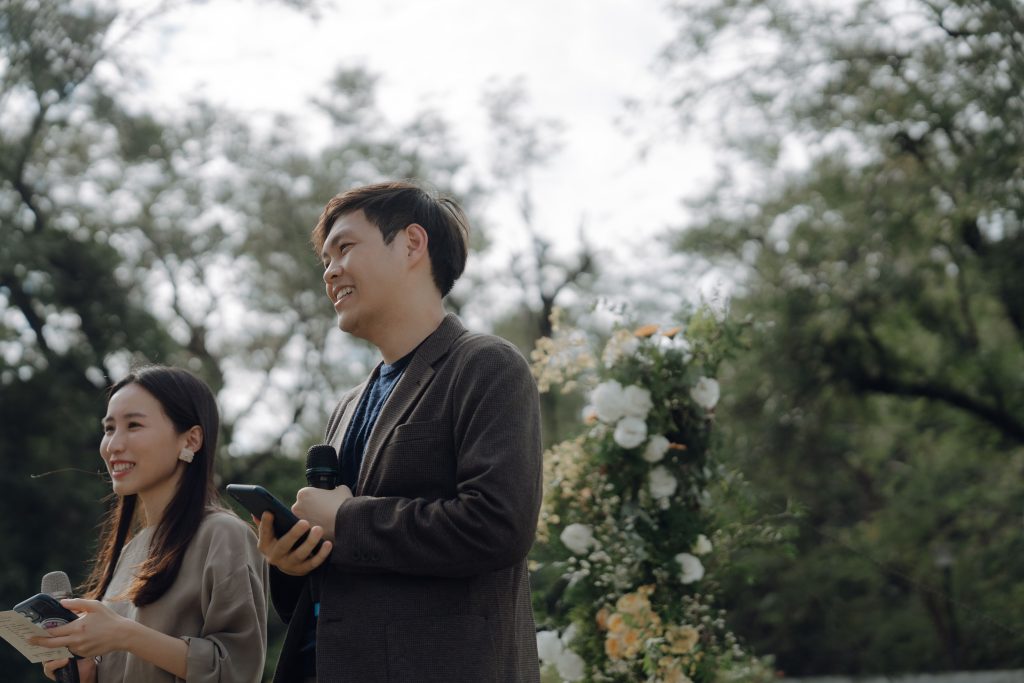 相較於婚禮中情緒起伏的跌宕,證婚帶給我的感受很純粹,單純且直面的感受到每一句話在儀式裡的重量、每個呼吸的深淺、每個人跟新人之間緊密且舒適的關係,每一次大笑跟落淚都能自在且清晰的傳遞給彼此。