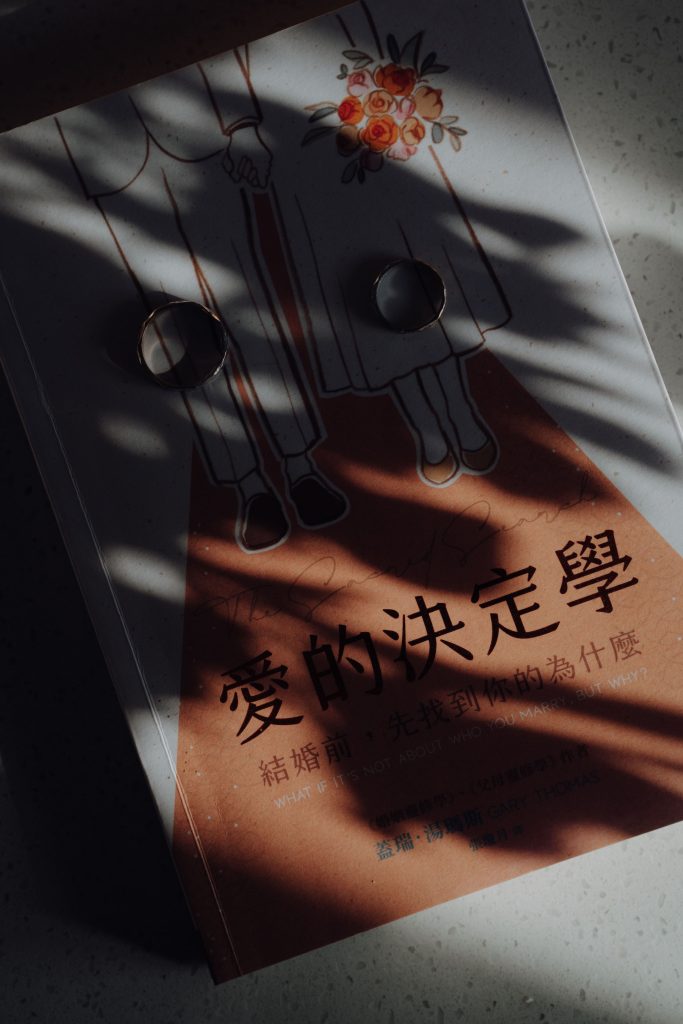 兩個人在教會認識,起初只是互有好感,慢慢的越來越多交集,也因為擔心彼此只是一時被對方的貼心吸引以及害怕交集甚密太快投入感情,幸運有好友思婷在其中協助禱告及陪伴,一起加入讀書會,「愛的決定學」是那時候讀書會一起讀的書,籌備時候我也查了一下書的內容,是一本給即將進入婚姻的人讓彼此透過問答的方式去理解對方是不是適合進入婚姻的對象,總覺得緣份安排的很巧妙,他們好像在某種牽引下成為了上帝為對方預備的夥伴啊!(๑´ㅂ`๑)